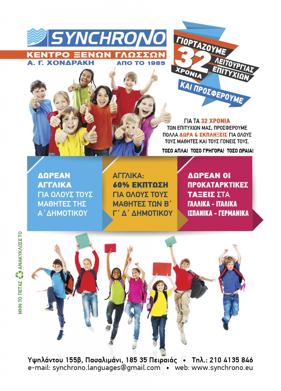 Γιορτάζουμε 39 χρόνια λειτουργίας και επιτυχιών και προσφέρουμε πολλά δώρα και εκπλήξεις για όλους τους μαθητές και τους γονείς τους.